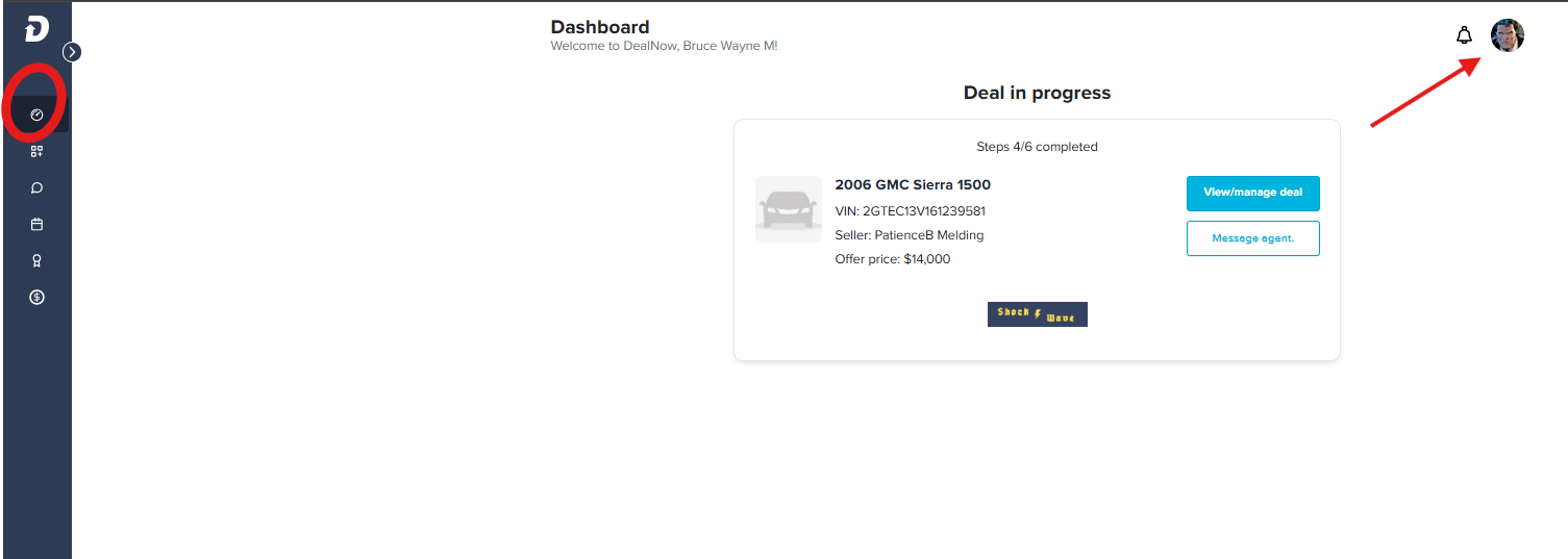 1. While logged into your DealNow account, go to your dashboard and click on your profile