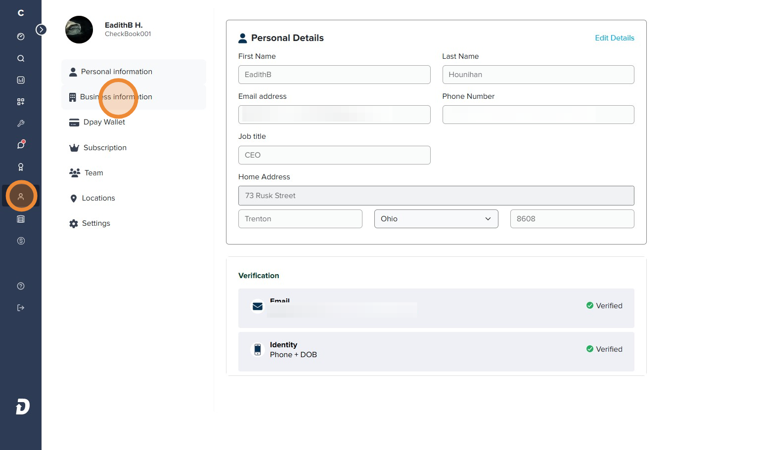 - In your account, select Account from the left menu, and then go to the Business information tab.