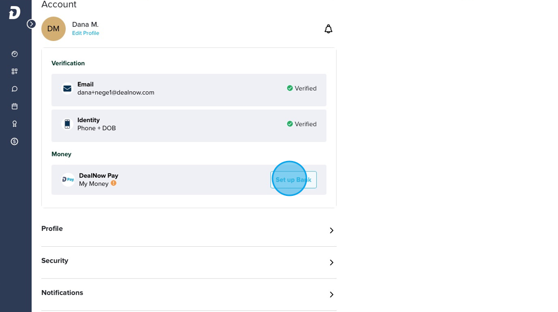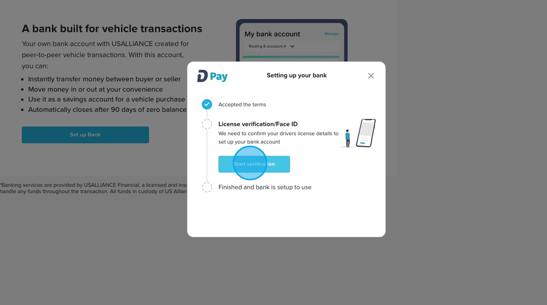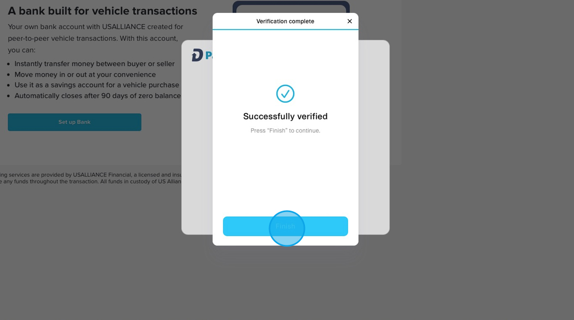 8. You will be walked through the verification process if you have not done so already. Once drivers license is verifed you will click "Finish"