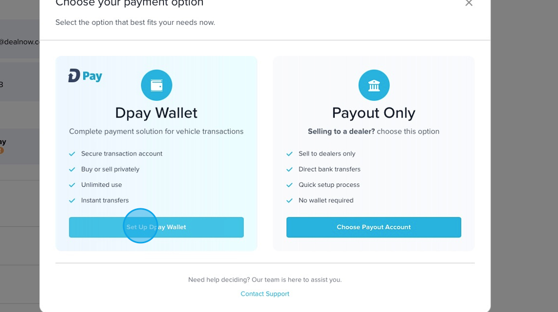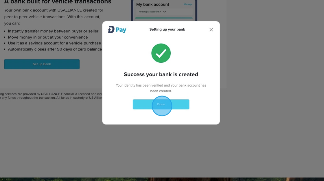 9. Once your Dpay wallet is set up you will see this Success modal and you can click "Done"