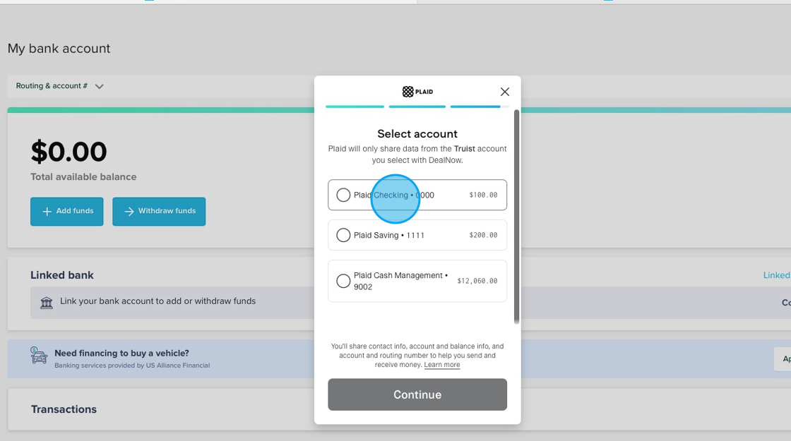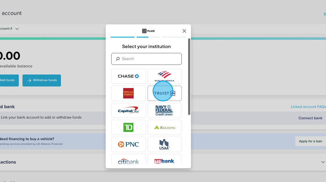 18. Plaid will walk you through logging in to your bank to get it connected.