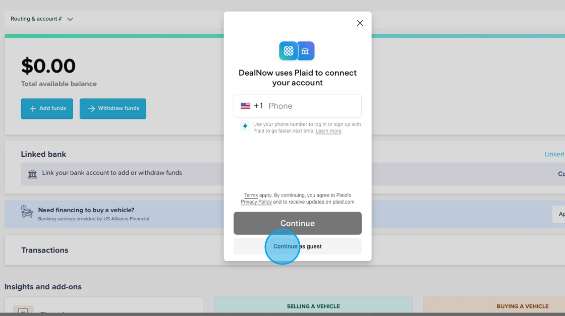 16. You can "Continue as guest" unless you alreayd have an account with Plaid