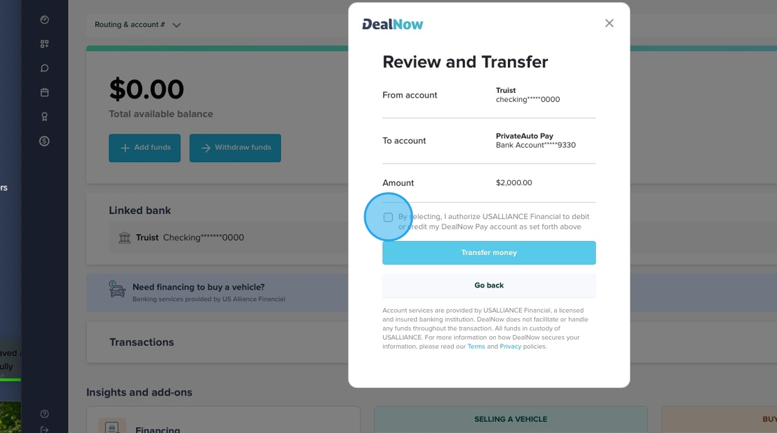 24. Review your deposit, click the checkbox, and then "Transfer money"
