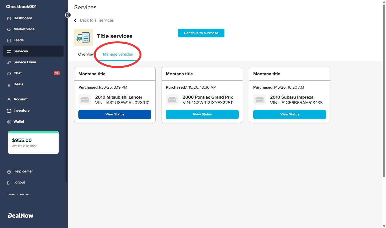 Quick Summary: The Montana Title service allows you to purchase and manage a Montana-issued vehicle title directly through Deal Now. Simply select the Title service in the services page, choose the vehicle you want to apply it to, complete payment, and track the title’s progress anytime under Manage vehicles.