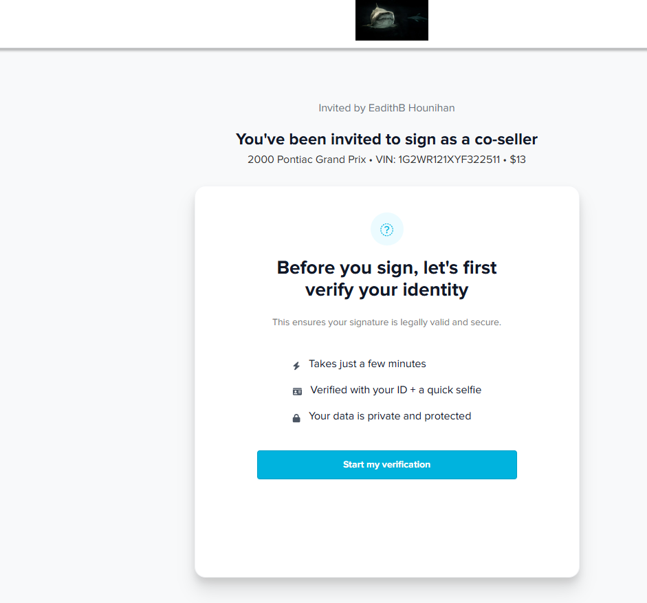 If you don’t see the identity verification page (like the screenshot below) and instead see a full dealership account dashboard, it usually means you are still logged into your account or someone else's account.